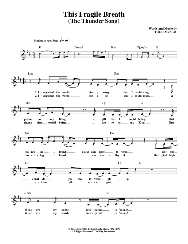 Download the sheet music for This Fragile Breath by Todd Agnew, from the album Grace Like Rain.