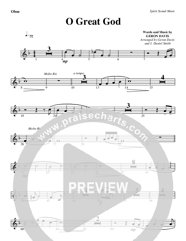 Download the Oboe sheet music for O Great God by Geron Davis, from the album Gone.