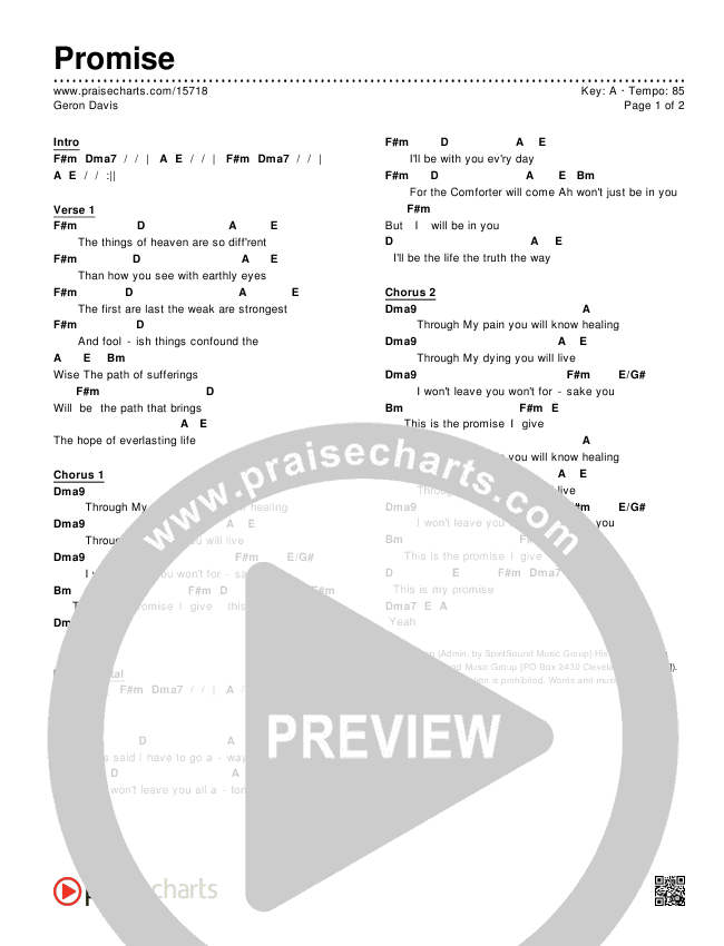 Download the PDF Chord Charts for Promise by Geron Davis, from the album Gone.