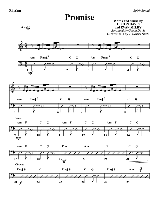 Download the Rhythm Chart for Promise by Geron Davis, from the album Gone.
