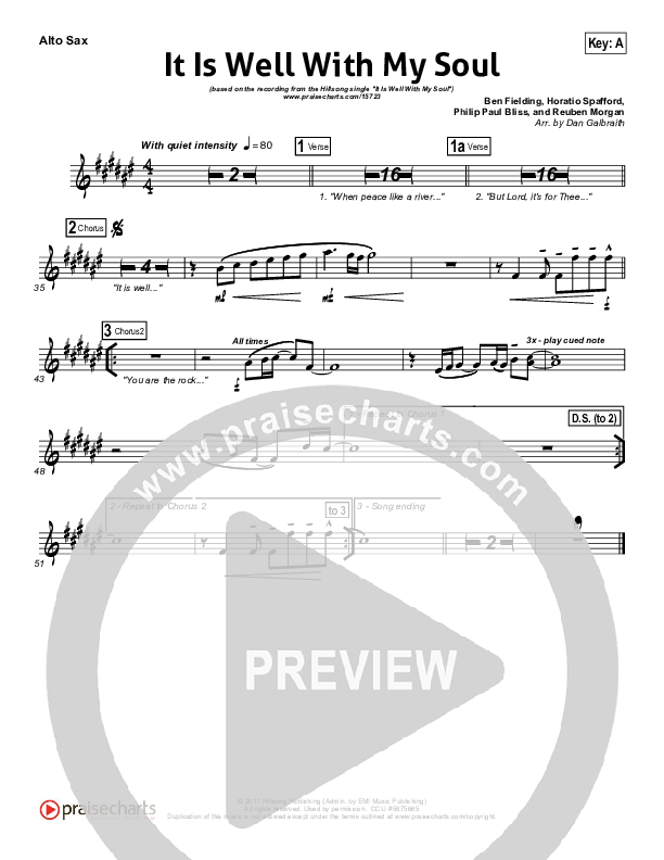 Download the AltoSax sheet music for It Is Well With My Soul by Hillsong Worship, from the album It Is Well With My Soul. This song was arranged by Daniel Galbraith in the key of A, Ab.