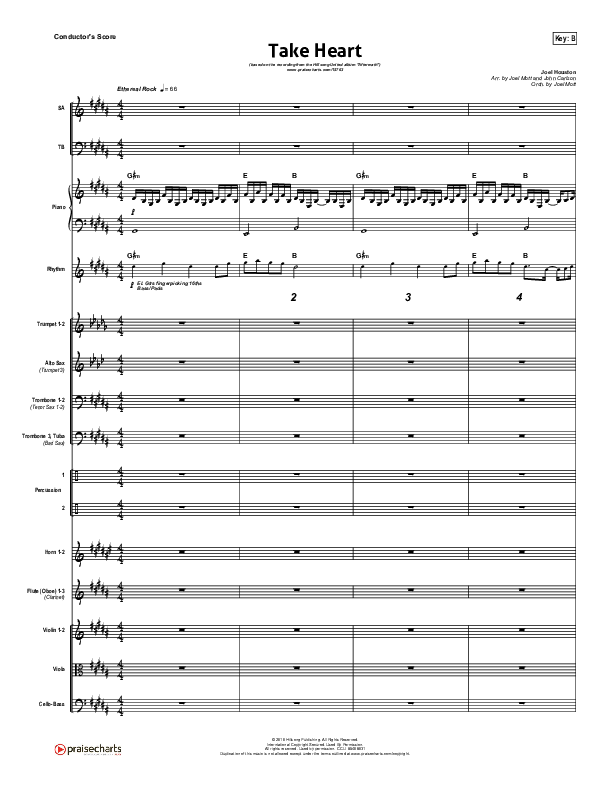 Download the Orchestration for Take Heart by Hillsong UNITED, from the album Aftermath. This song was arranged by Joel Mott / John Carlson in the key of B, Bb.