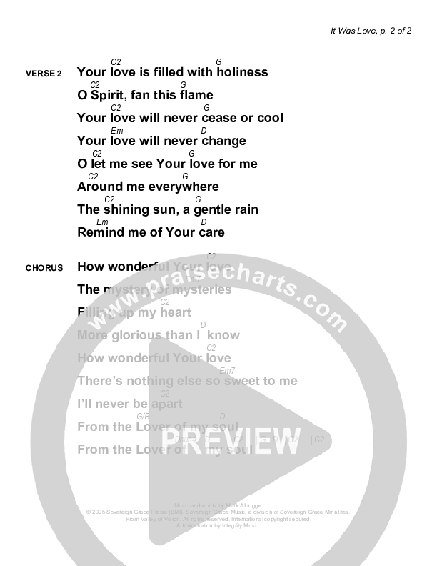 It Was Love Chords & Lyrics (Sovereign Grace)