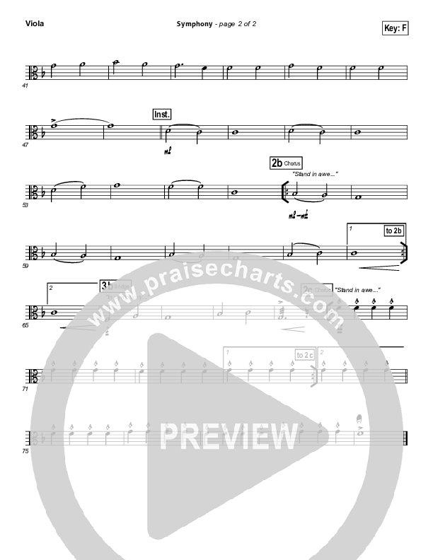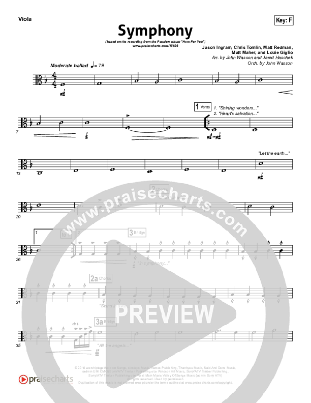 Download the Viola sheet music for Symphony by Chris Tomlin / Passion, from the album Here For You. This song was arranged by John Wasson / Jared Haschek in the key of F, G.