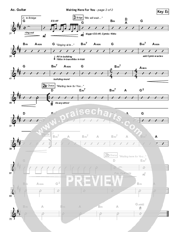 Download the Acoustic Guitar sheet music for Waiting Here For You by Christy Nockels / Passion, from the album Here For You. This song was arranged by Joel Mott / John Wasson in the key of D, E, Eb.