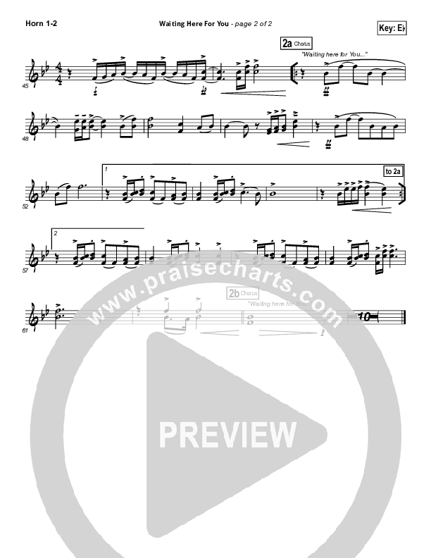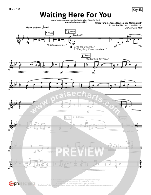 Download the French Horn sheet music for Waiting Here For You by Christy Nockels / Passion, from the album Here For You. This song was arranged by Joel Mott / John Wasson in the key of D, E, Eb.