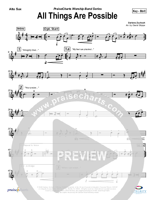 Download the AltoSax sheet music for All Things Are Possible by Hillsong Worship, from the album All Things Are Possible. This song was arranged by David Shipps in the key of Bb, C.