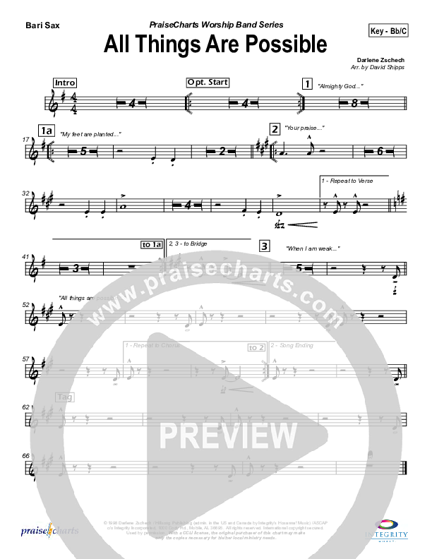 All Things Are Possible Bari Sax Sheet Music PDF (Hillsong Worship)