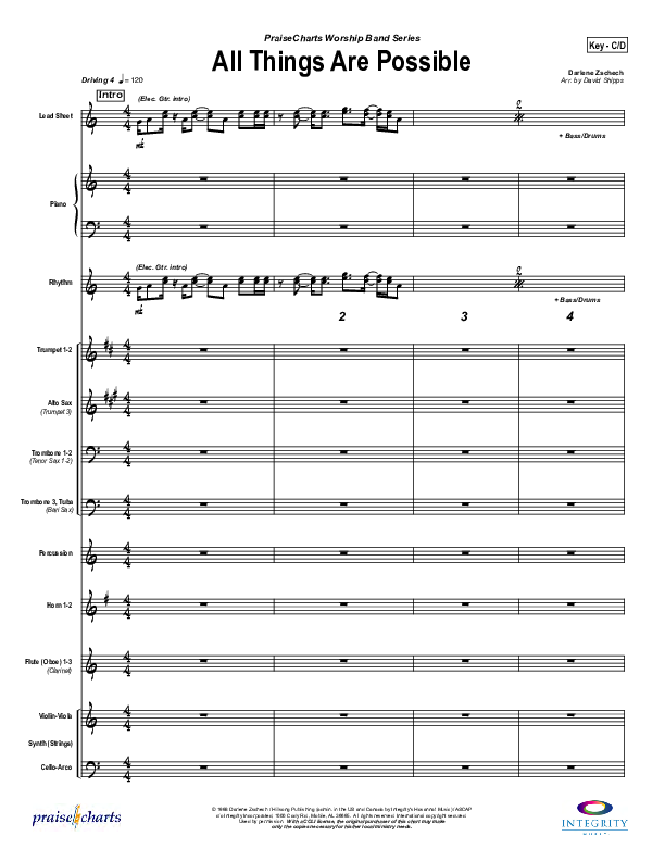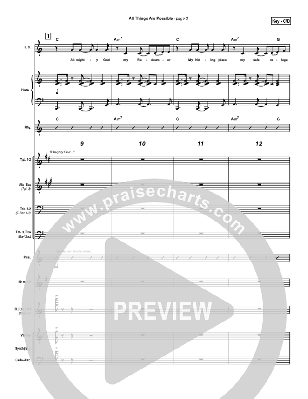 Download the Orchestration for All Things Are Possible by Hillsong Worship, from the album All Things Are Possible. This song was arranged by David Shipps in the key of Bb, C.