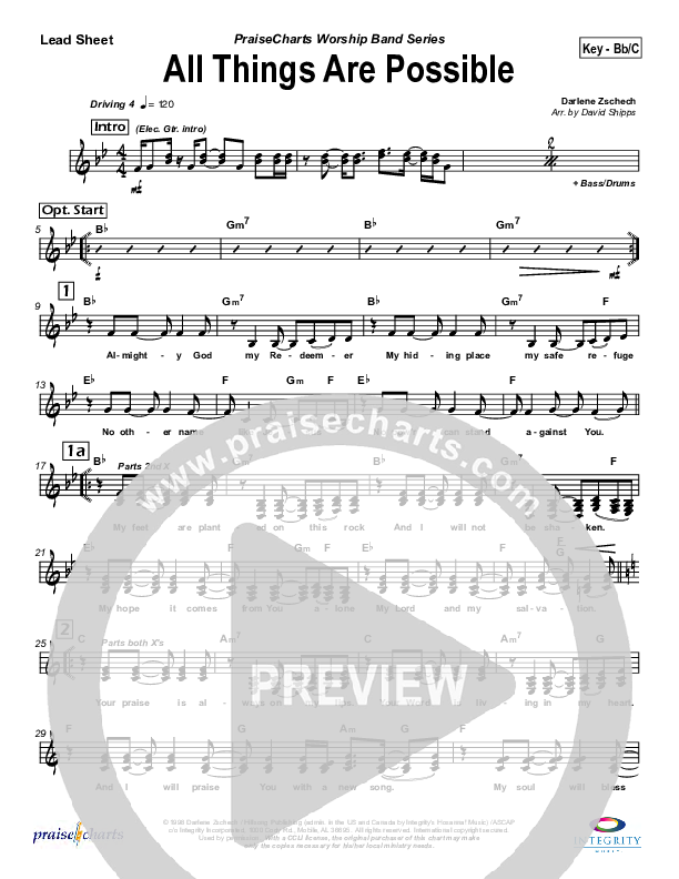 Download the sheet music for All Things Are Possible by Hillsong Worship, from the album All Things Are Possible. This song was arranged by David Shipps in the key of Bb, C.
