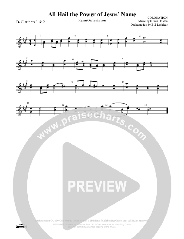 All Hail The Power Of Jesus Name (Coronation) Clarinet Sheet Music PDF (Celebrating Grace)