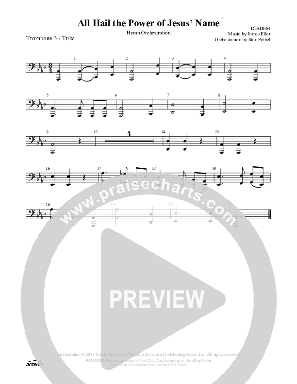 Download the Trombone 3/Tuba sheet music for All Hail The Power Of Jesus Name, from the album Celebrating Grace Hymnal.