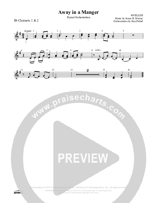 Download the Clarinet sheet music for Away In A Manger (Cradle Song), from the album Celebrating Grace Hymnal.