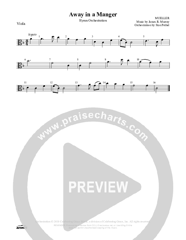 Download the Viola sheet music for Away In A Manger (Cradle Song), from the album Celebrating Grace Hymnal.
