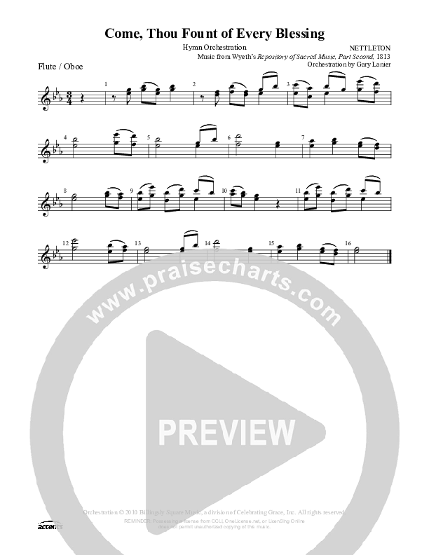 Download the Flute/Oboe sheet music for Come Thou Fount Of Every Blessing, from the album Celebrating Grace Hymnal.