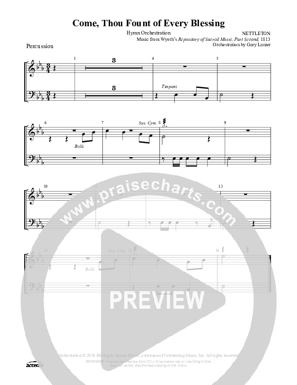 Download the percussion sheet music for Come Thou Fount Of Every Blessing, from the album Celebrating Grace Hymnal.