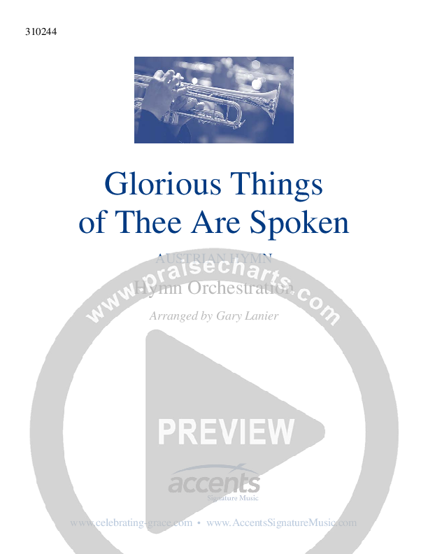 Download the Orchestration for Glorious Things Of Thee Are Spoken, from the album Celebrating Grace Hymnal.