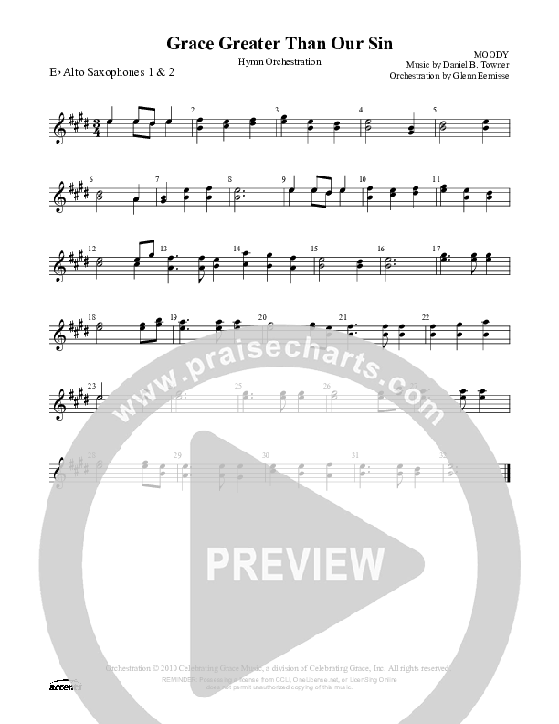 Download the Alto Sax 1,2 sheet music for Grace Greater Than Our Sin, from the album Celebrating Grace Hymnal.