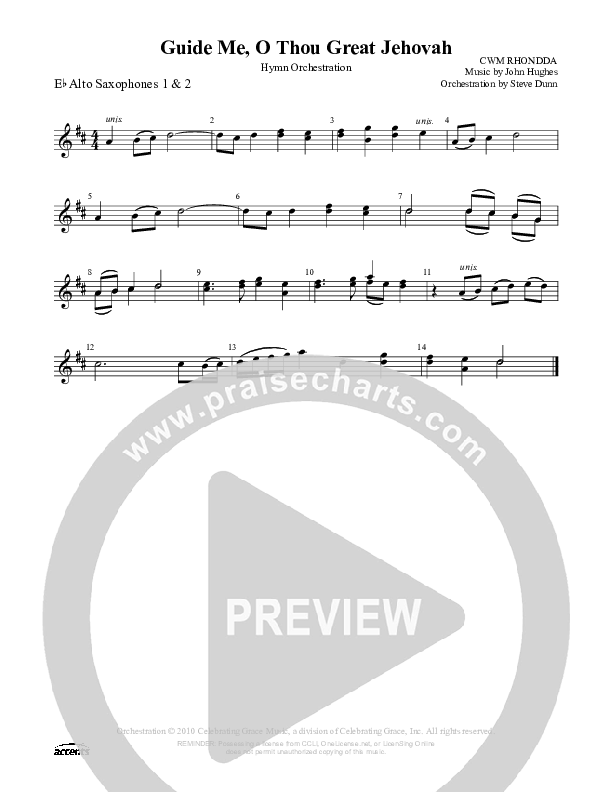 Download the Alto Sax 1,2 sheet music for Guide Me O Thou Great Jehovah, from the album Celebrating Grace Hymnal.