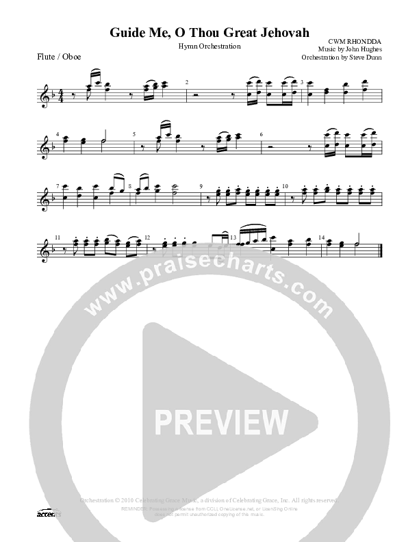 Download the Flute/Oboe sheet music for Guide Me O Thou Great Jehovah, from the album Celebrating Grace Hymnal.
