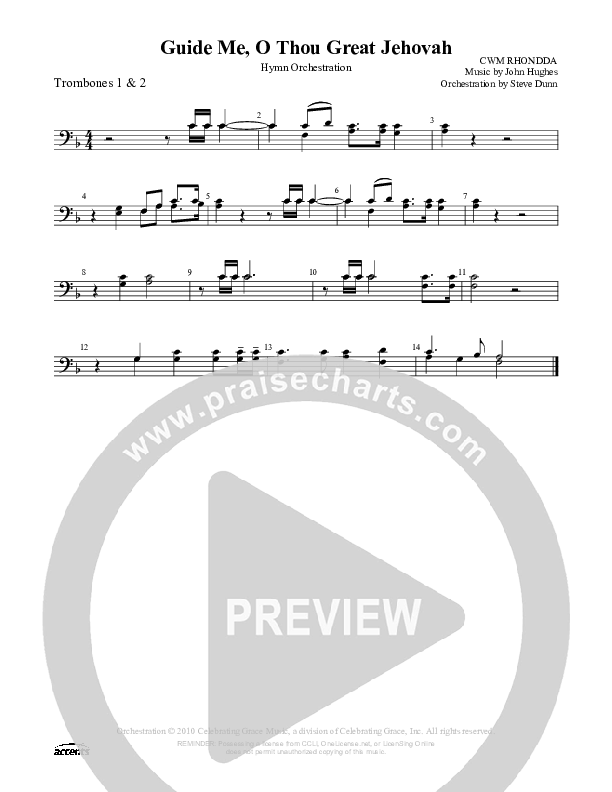 Download the Trombone 1,2 sheet music for Guide Me O Thou Great Jehovah, from the album Celebrating Grace Hymnal.