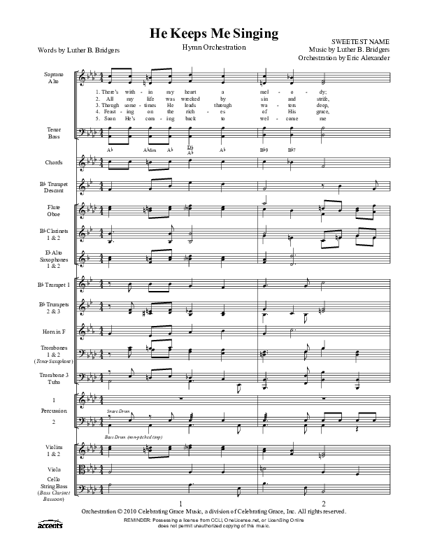 Download the Orchestration for He Keeps Me Singing, from the album Celebrating Grace Hymnal.