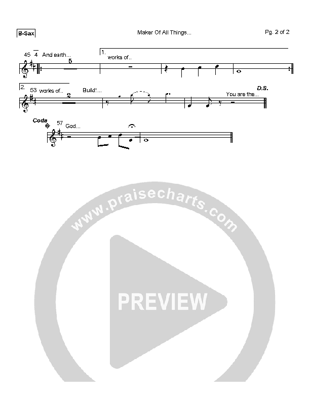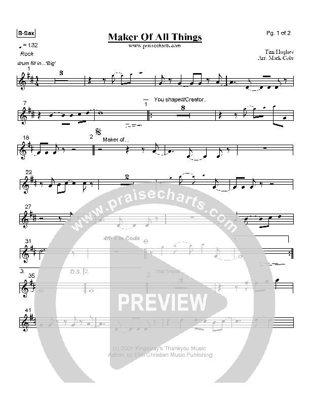 Download the Bari Sax sheet music for Maker of All Things by Tim Hughes, from the album Here I Am To Worship. This song was arranged by Mark Cole in the key of F, G.