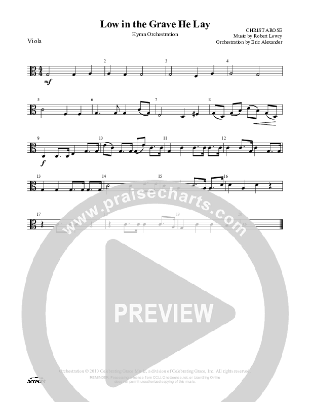 Download the Viola sheet music for Low In The Grave He Lay, from the album Celebrating Grace Hymnal.
