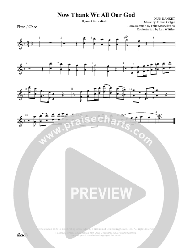 Download the Flute/Oboe sheet music for Now Thank We All Our God, from the album Celebrating Grace Hymnal.