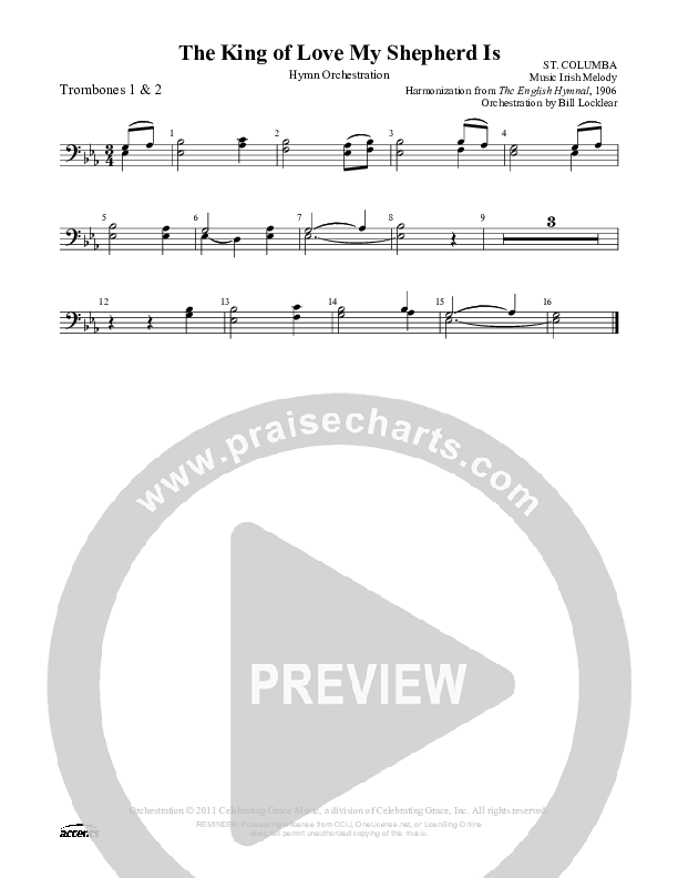 Download the Trombone 1,2 sheet music for The King Of Love My Shepherd Is, from the album Celebrating Grace Hymnal.