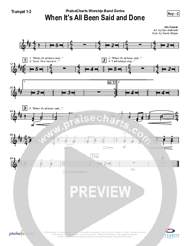 Download the trumpet sheet music for When It's All Been Said And Done by Robin Mark, from the album Revival In Belfast. This song was arranged by Daniel Galbraith / David Shipps in the key of C, D.