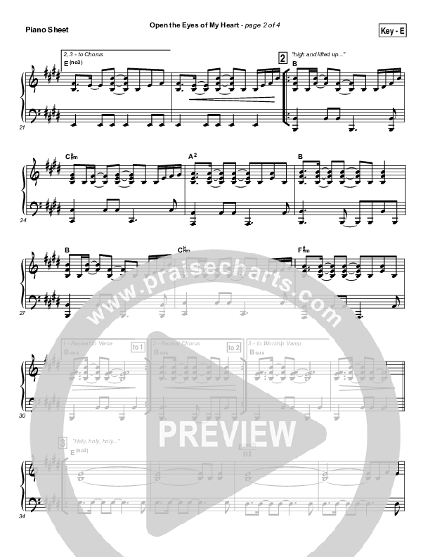 Download the piano sheet for Open The Eyes Of My Heart by Paul Baloche, from the album WOW Worship Blue. This song was arranged by David Shipps in the key of D, E, F.