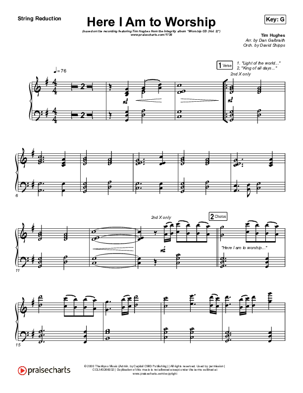 Download the Orchestration for Here I Am To Worship by Jonathan Noel, from the album iWorship CD (Vol. 2). This song was arranged by Daniel Galbraith / David Shipps in the key of F, G.