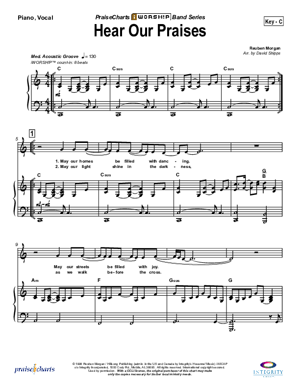 Download the sheet music for Hear Our Praises by Hillsong Worship, from the album iWorship: DVD D. This song was arranged by David Shipps in the key of Bb, C.