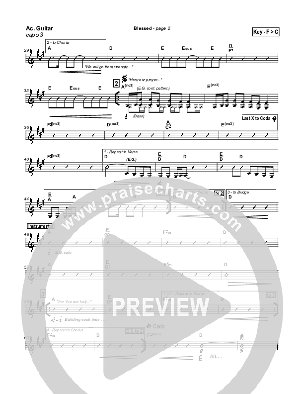 Download the Acoustic Guitar sheet music for Blessed by Hillsong Worship, from the album Blessed. This song was arranged by Daniel Galbraith / Ed Hogan in the key of F, G.