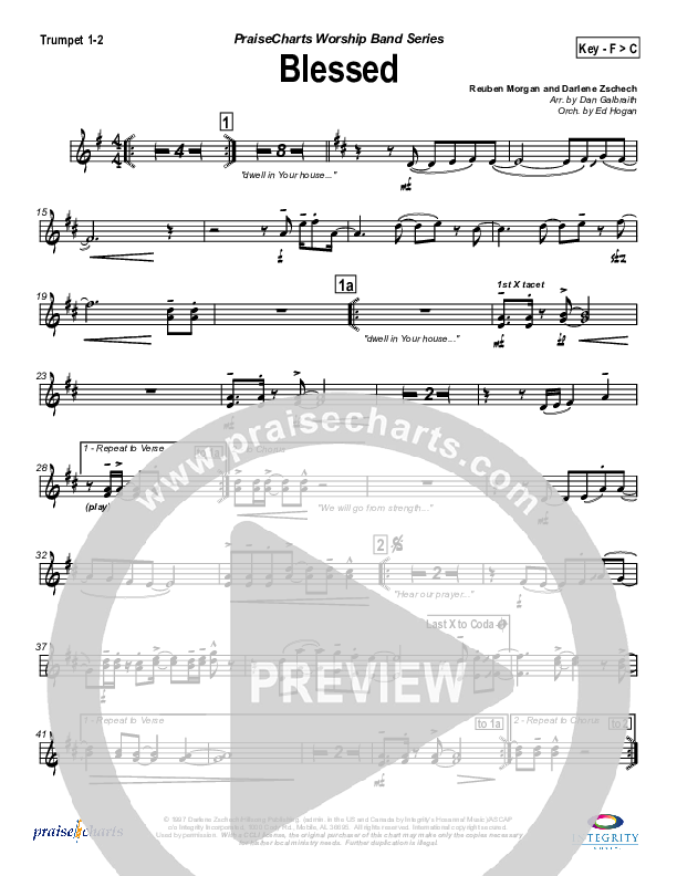 Download the trumpet sheet music for Blessed by Hillsong Worship, from the album Blessed. This song was arranged by Daniel Galbraith / Ed Hogan in the key of F, G.