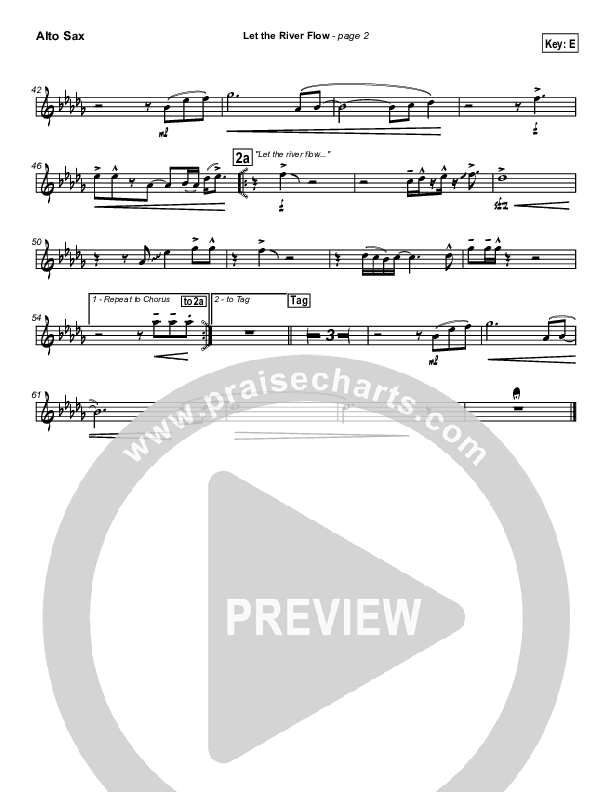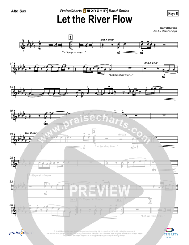 Download the AltoSax sheet music for Let The River Flow by Darrell Evans, from the album iWorship: DVD D. This song was arranged by David Shipps in the key of E, F.