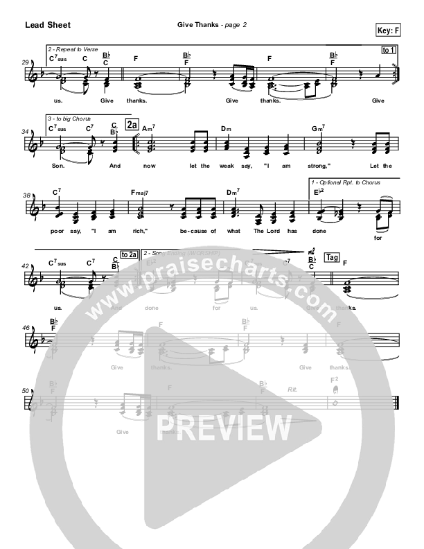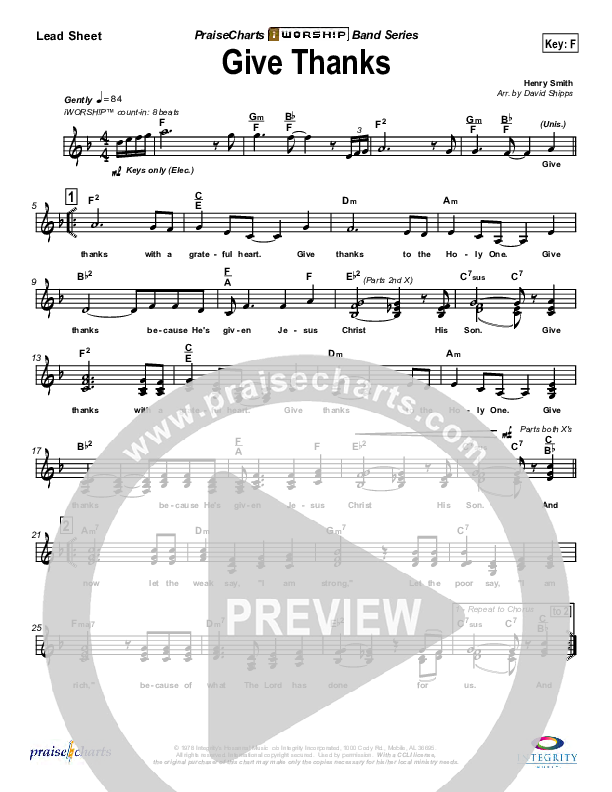 Download the Orchestration for Give Thanks by Don Moen, from the album iWorship: DVD C. This song was arranged by David Shipps in the key of E, F.