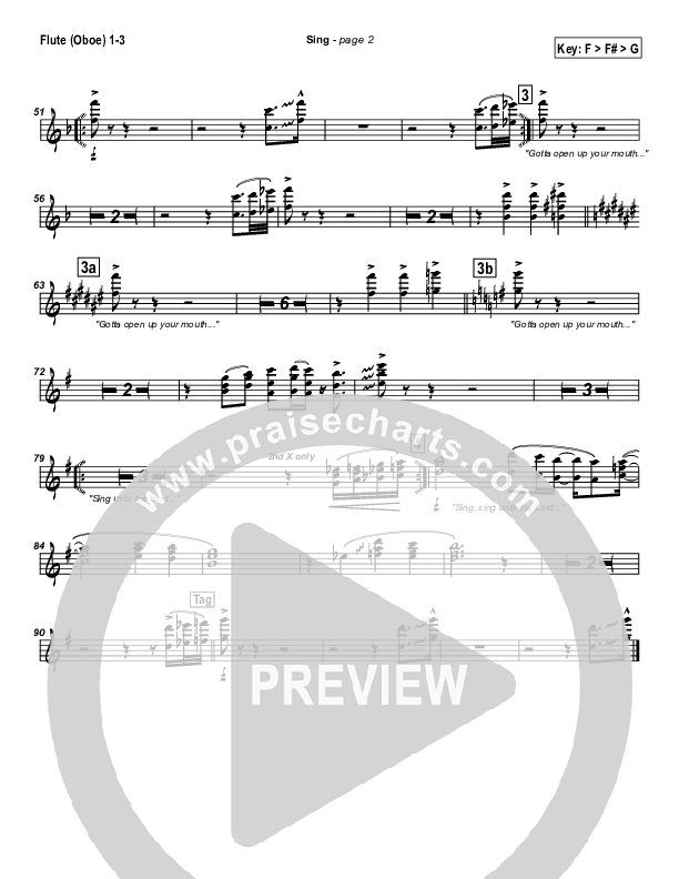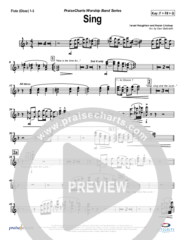 Download the Flute/Oboe sheet music for Sing by Travis Cottrell, from the album Unashamed Love. This song was arranged by Daniel Galbraith in the key of F, Gb.