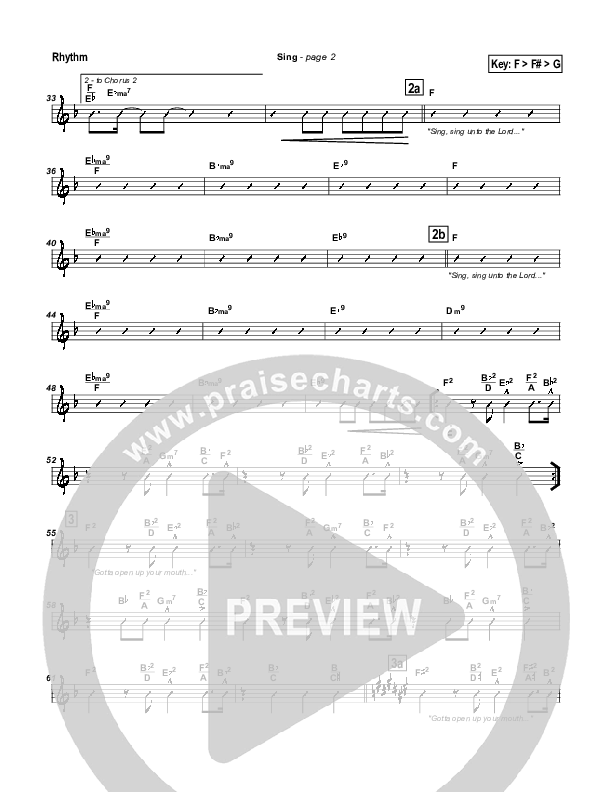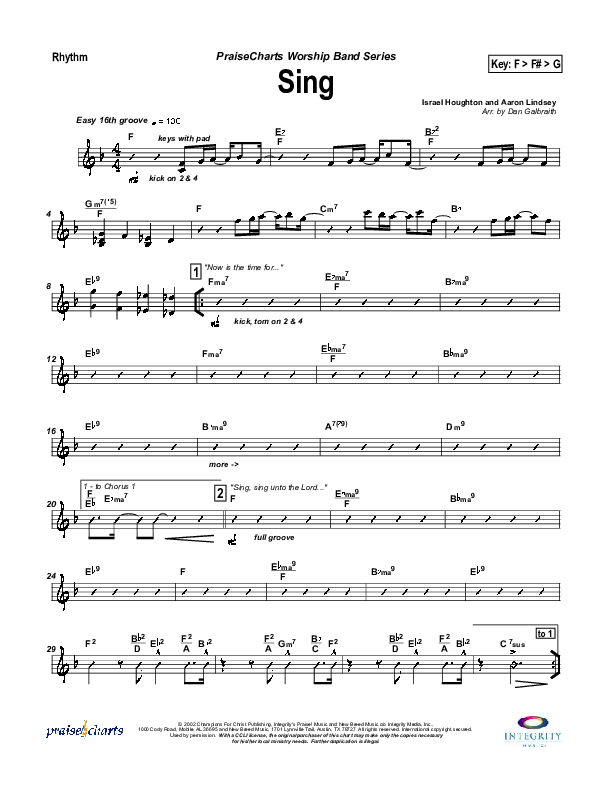 Download the Rhythm Chart for Sing by Travis Cottrell, from the album Unashamed Love. This song was arranged by Daniel Galbraith in the key of F, Gb.