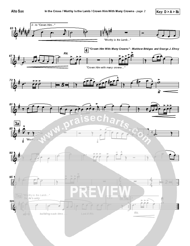 Download the AltoSax sheet music for Worthy Is the Lamb (with In the Cross and Crown Him With Many Crowns) by Travis Cottrell, from the album Unashamed Love. This song was arranged by Daniel Galbraith in the key of D, Eb.