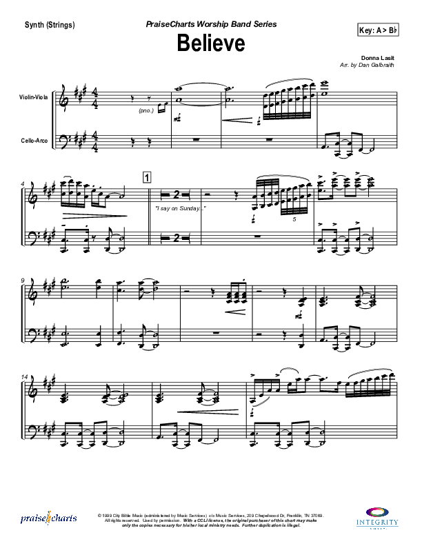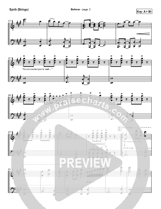 Download the Orchestration for Believe by Jason Breland, from the album Believe. This song was arranged by Daniel Galbraith in the key of A, Ab.