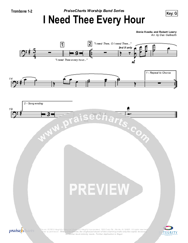 Download the Trombone 1,2 sheet music for I Need Thee Every Hour by Jason Breland, from the album Believe. This song was arranged by Daniel Galbraith in the key of G.