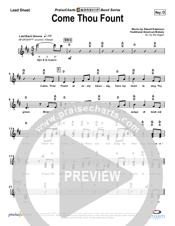 Download the Orchestration for Come Thou Fount Of Every Blessing by Bob Fitts, from the album iWorship: DVD F. This song was arranged by Ed Hogan in the key of D, Eb.