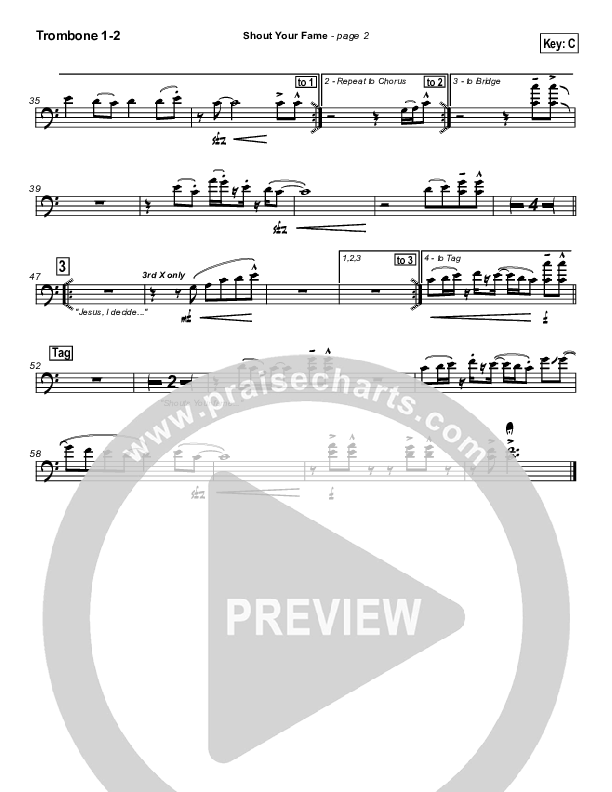 Shout Your Fame Trombone Sheet Music PDF (Hillsong Worship)