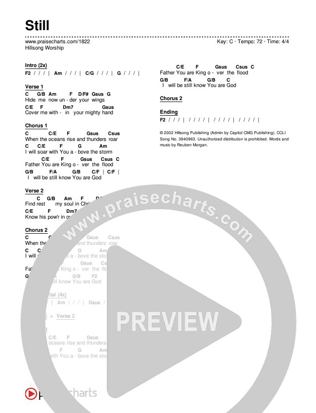 Download the PDF Chord Charts for Still by Hillsong Worship, from the album Hope. This song was arranged by David Shipps / Daniel Galbraith in the key of C, Db.