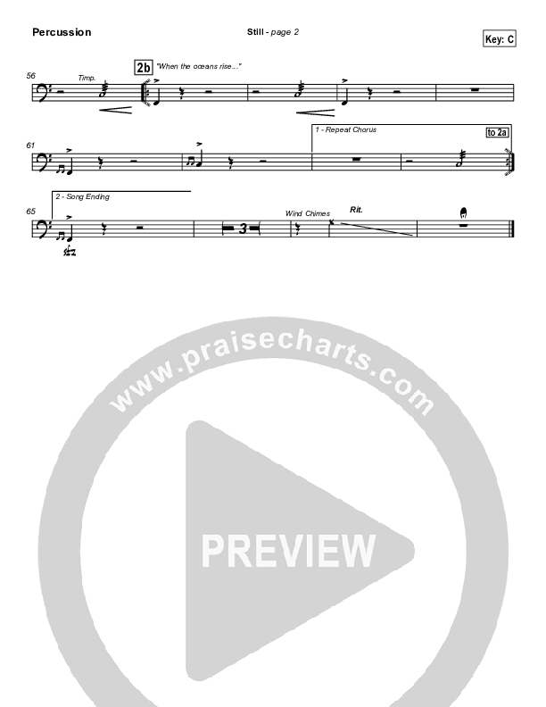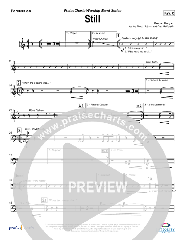 Download the percussion sheet music for Still by Hillsong Worship, from the album Hope. This song was arranged by David Shipps / Daniel Galbraith in the key of C, Db.