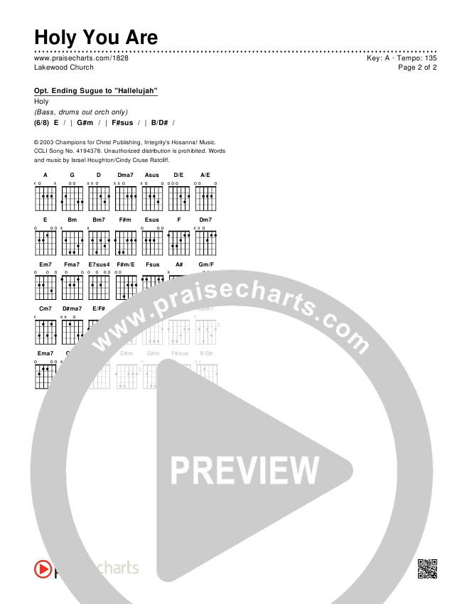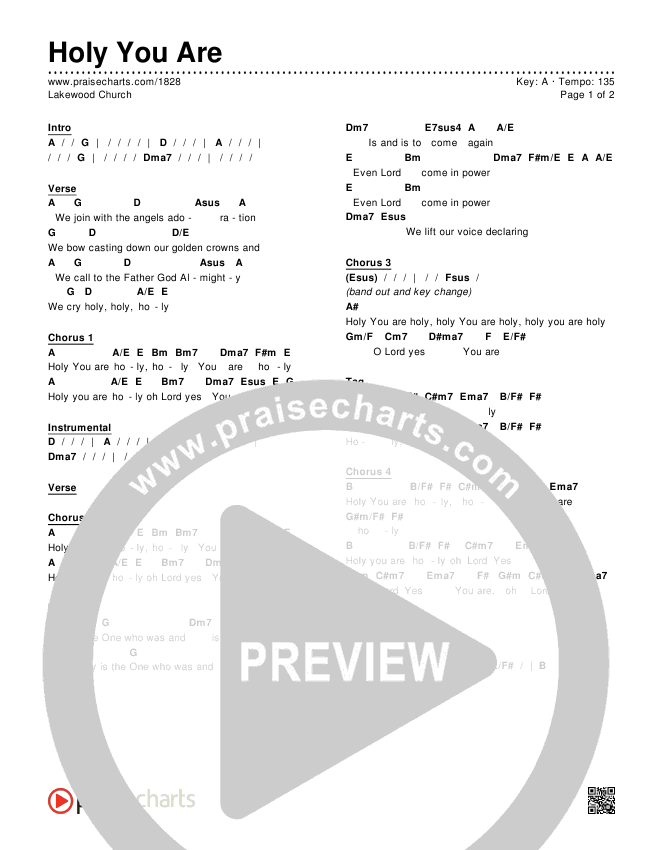 Download the PDF Chord Charts for Holy You Are by Lakewood Church, from the album Cover the Earth. This song was arranged by Daniel Galbraith in the key of C, Db.