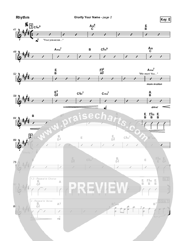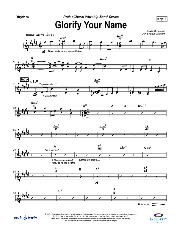 Download the Rhythm Chart for Glorify Your Name by Lakewood Church, from the album Cover the Earth. This song was arranged by Daniel Galbraith in the key of E, Eb.