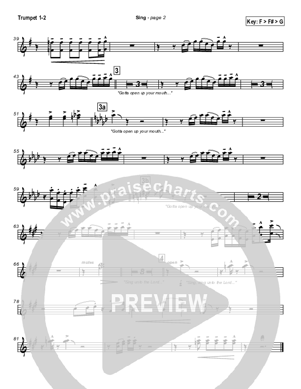 Download the trumpet sheet music for Sing by Lakewood Church, from the album Cover the Earth. This song was arranged by Daniel Galbraith in the key of F, G.